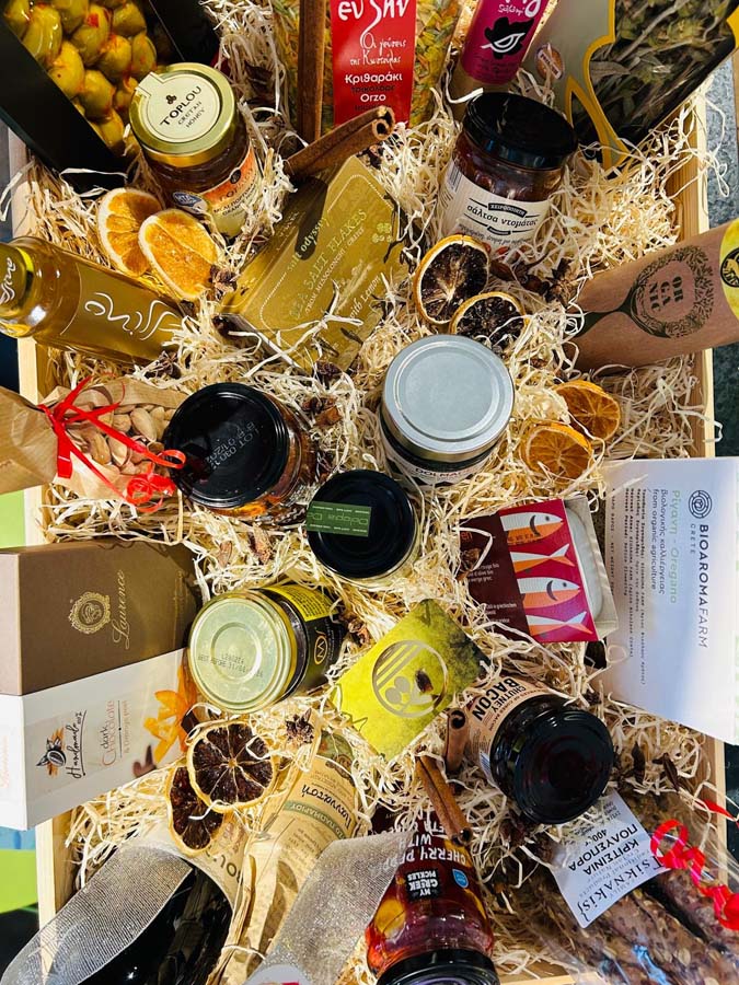 Original griechische Spezialitäten erinnern nicht nur viele an einen zurückliegenden Urlaub. Sie bieten auch für all jene, die noch nie in Griechenland waren, ein einzigartiges Geschmackserlebnis. Damit du jemandem aus deiner Familie, dem Freundeskreis oder einem besonders geschätzten Geschäftspartner eine Freude machen kannst, bieten wir Geschenktaschen und -boxen ohne Plastik in verschiedenen Größen und Zusammenstellungen an. Nicht nur zu Weihnachten, sondern das ganze Jahr über.