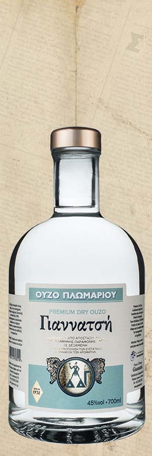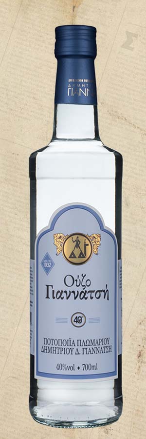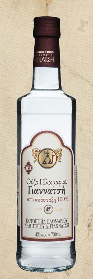 Brennerei von Plomari Dimitris Giannatsi vom frühen 20. Jahrhundert bis heute, destilliert in traditionellen Kupferdestillierapparaten, aus reinem Naturmaterial aus Griechenland.